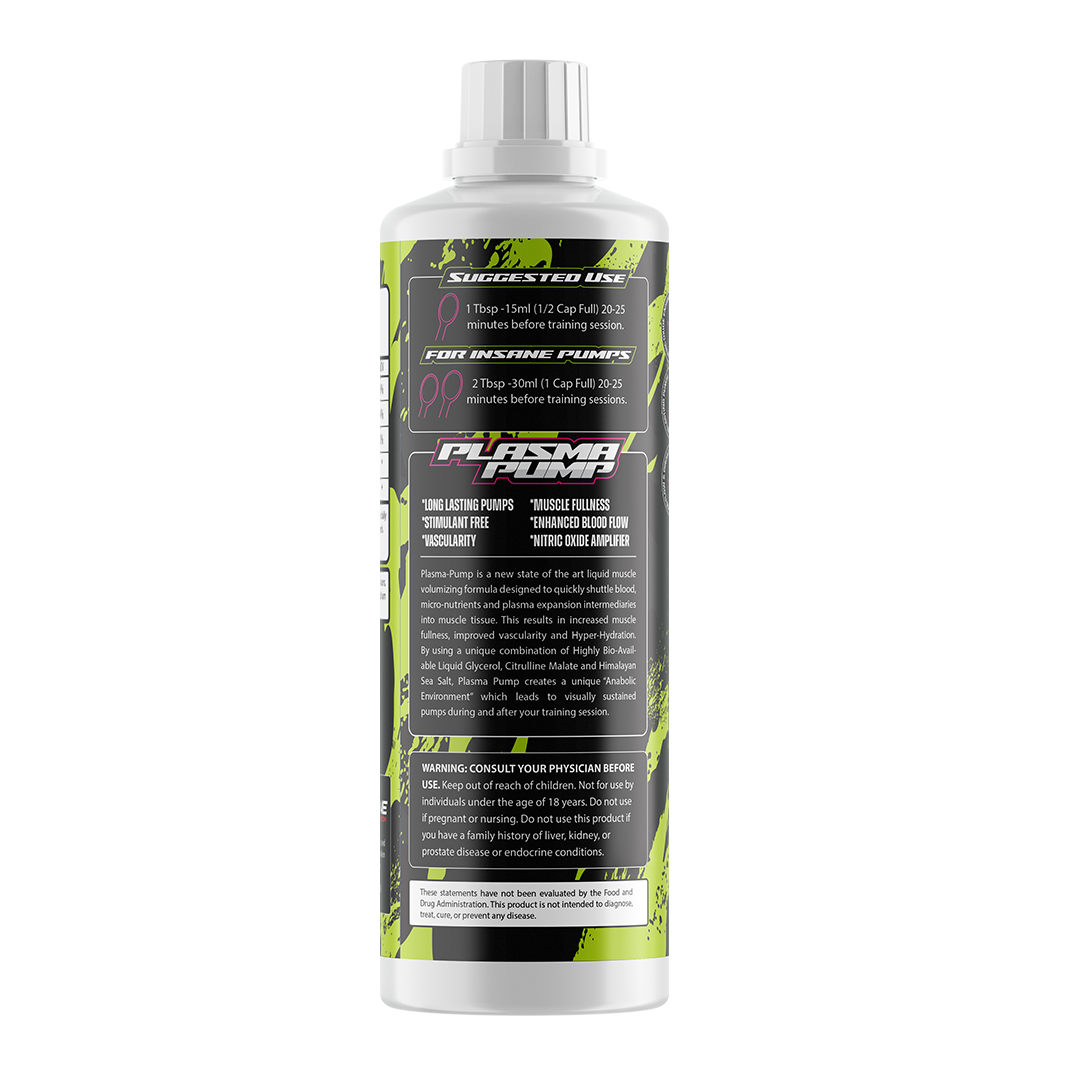 Taking 1/2 cap to 1 cap of Plasma Pump before workouts results in insane pumps and muscle volume which is noticeable in minutes. Our unique liquid based formula uses a combination of Himalayan Sea Salt, Liquid Glycerol and Citrulline Malate to promote blood flow and plasma expansion intermediaries… these in turn deliver muscular thickness, fullness and roundness.